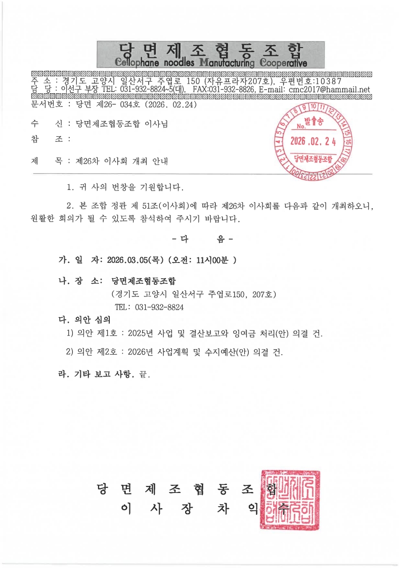 제26차 이사회 개최 안내
